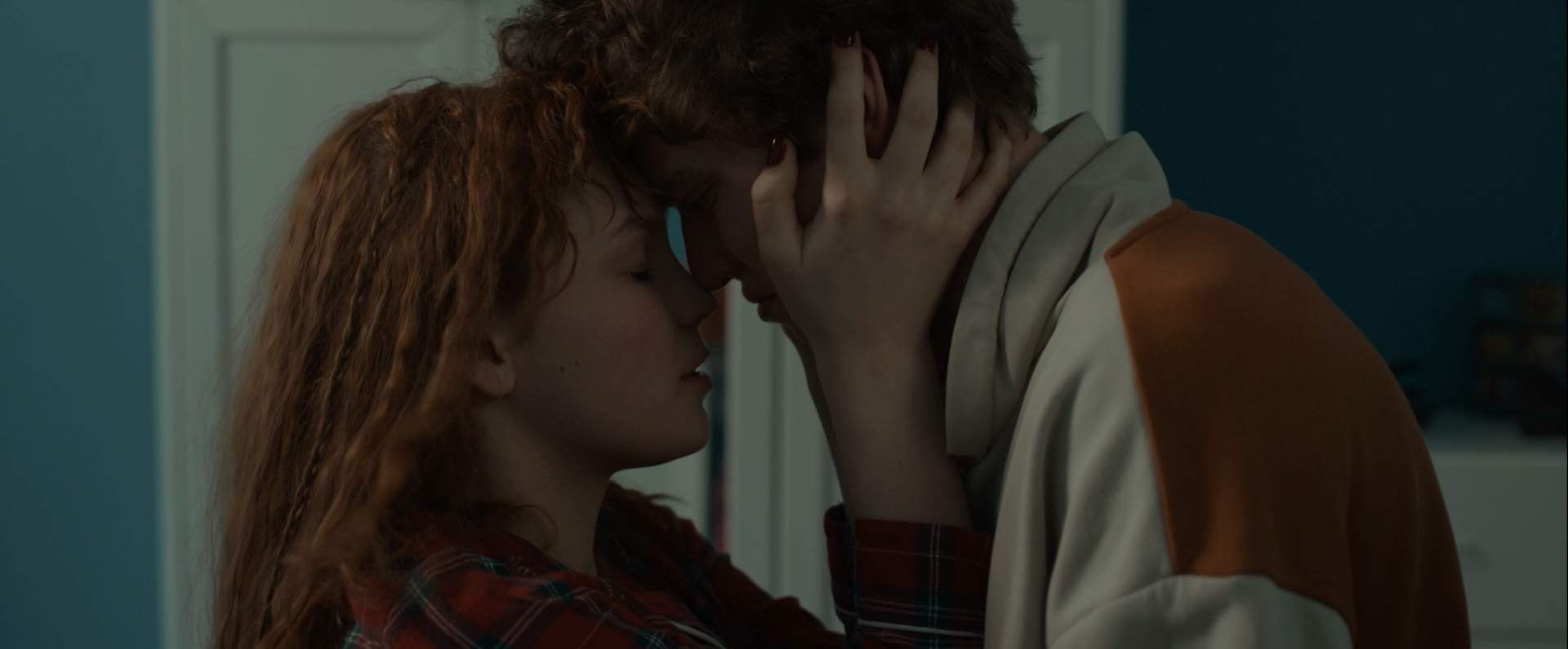 Interestingly, this striking blue-orange harmony wasn’t immediately obvious on set under practical lighting and monitors. Once we recognized its potential in post, we amplified it thoughtfully: pushing aside competing hues, muting distracting mid-tones, and cleaning up unwanted color bleed. We kept the palette focused and romantic — softening edges where needed, preserving emotional warmth, and allowing the orange hair to serve as the emotional anchor within the enveloping blue world.